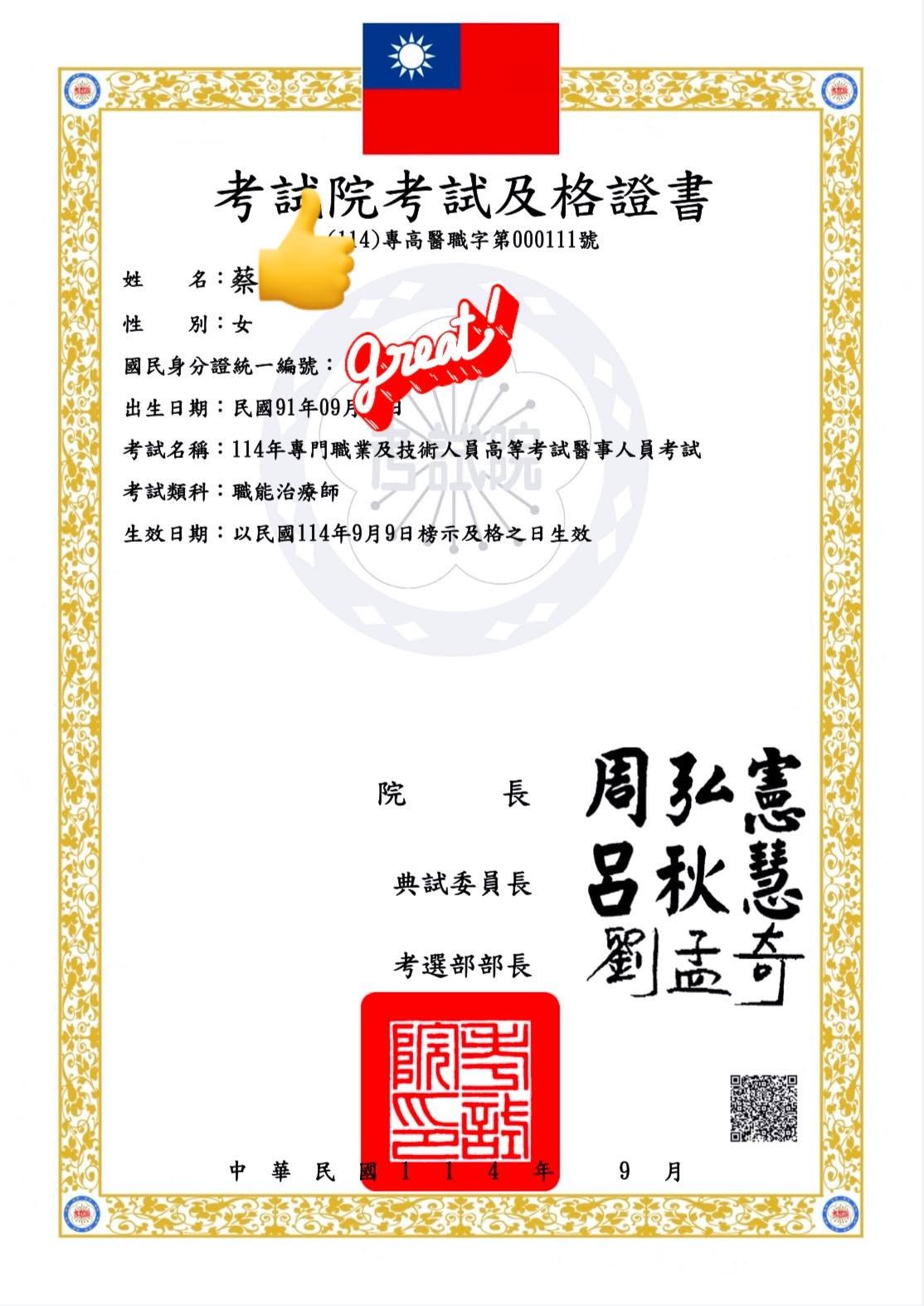 【國家考試錄取榮譽榜】蔡妤蓁