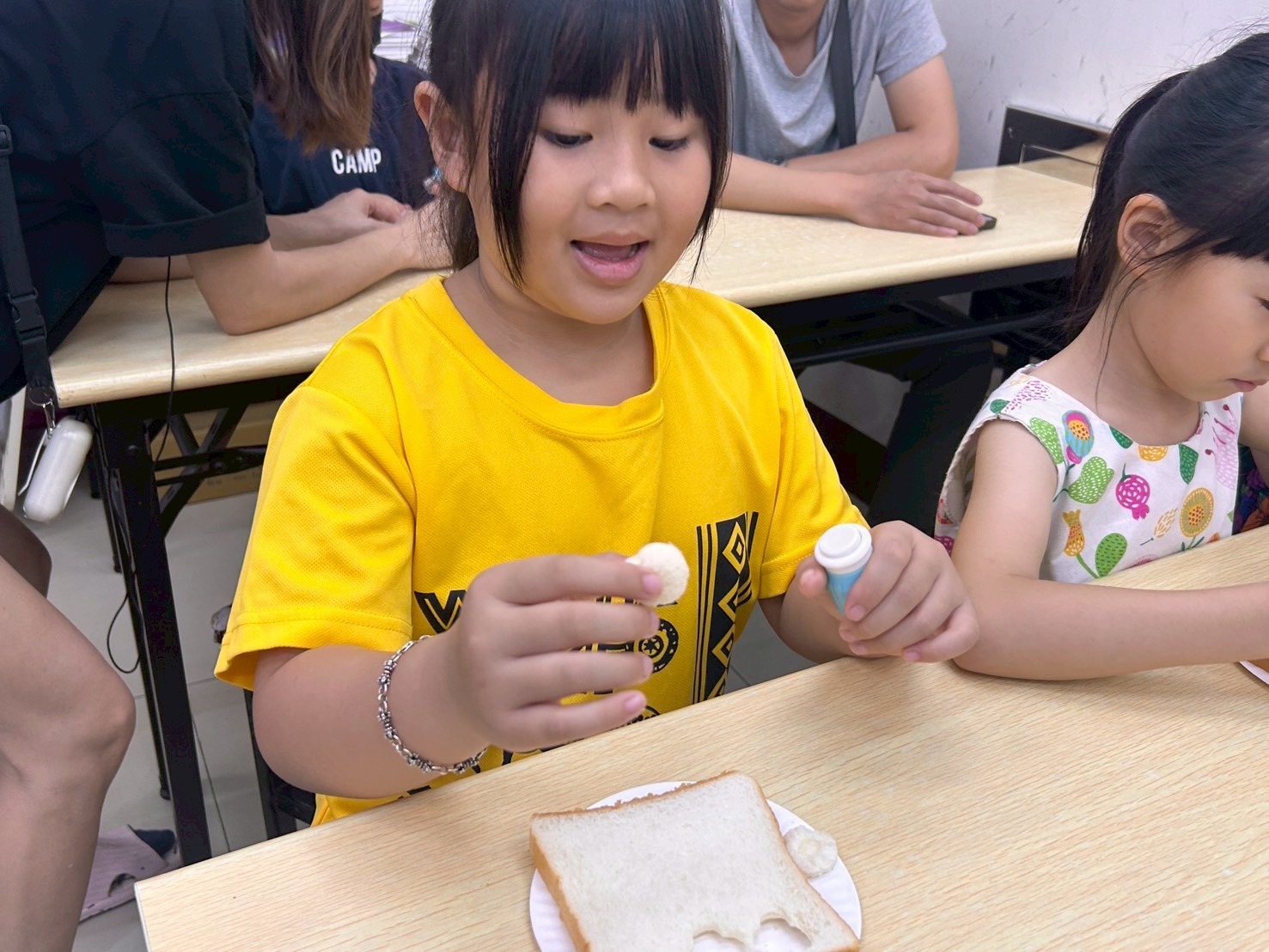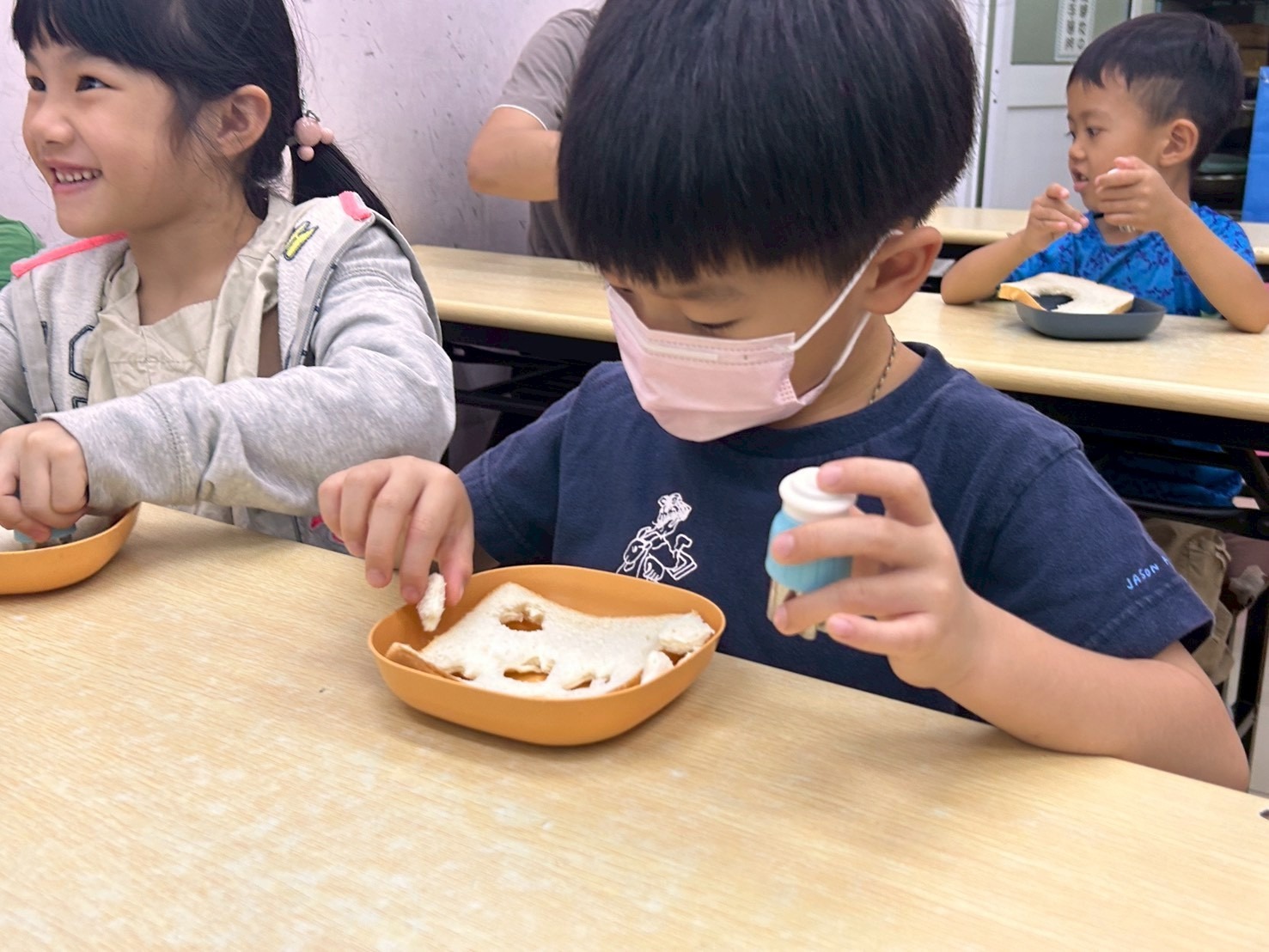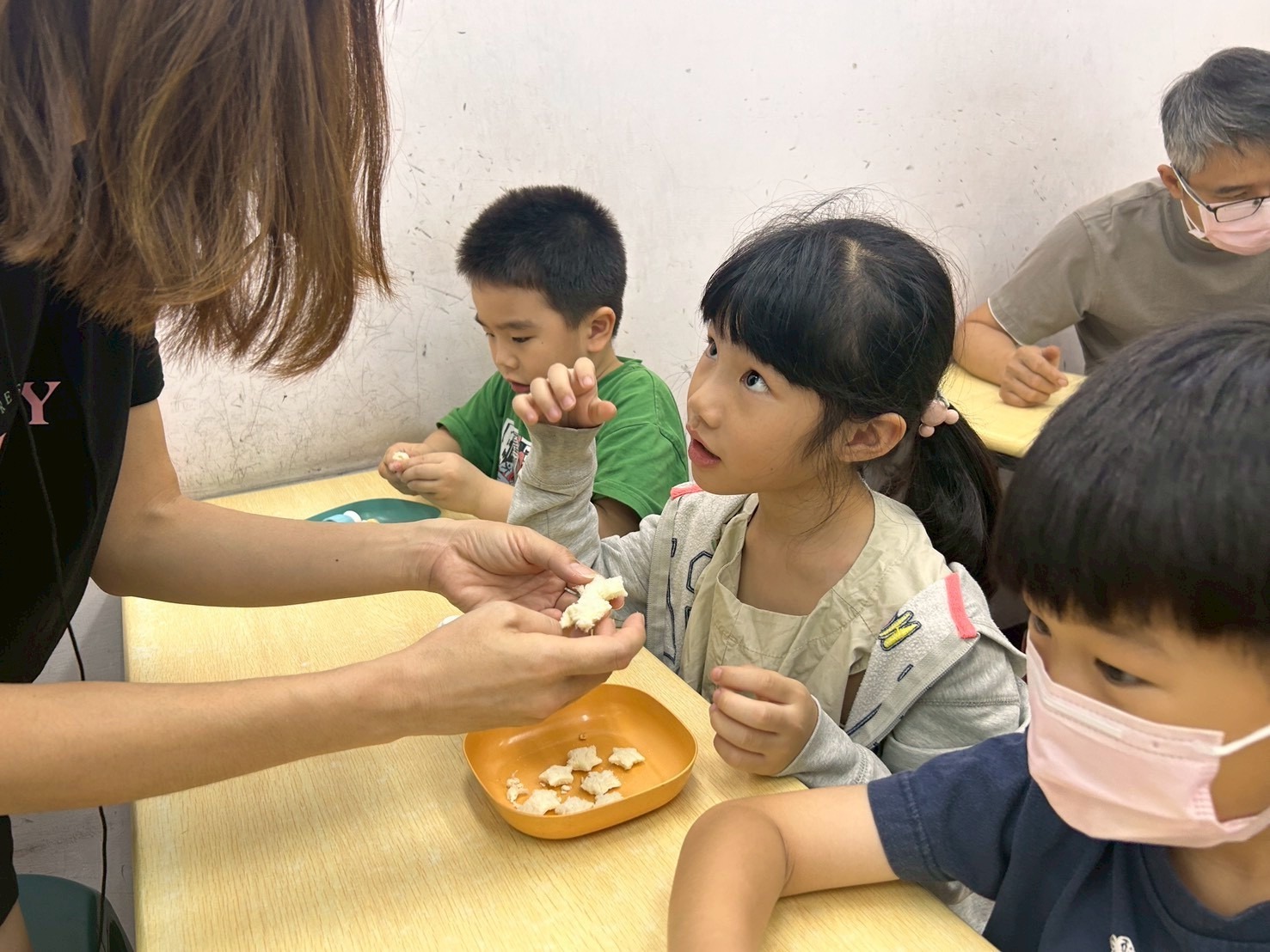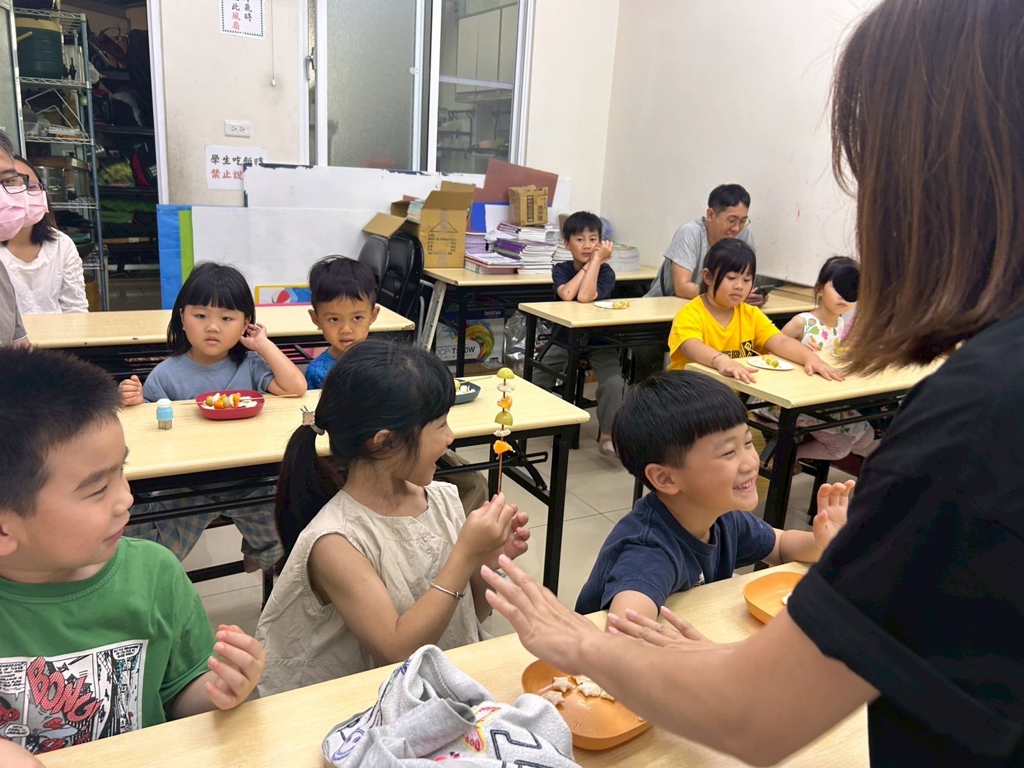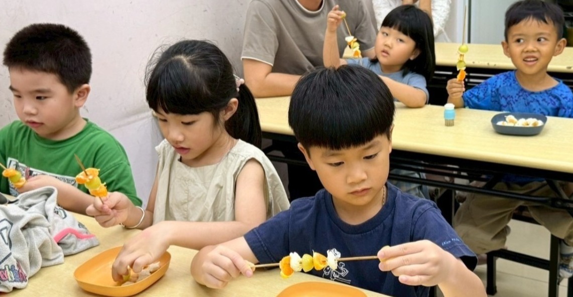 孩子們一邊動手、一邊開口,慢慢從玩樂中進入英語的世界,也自然建立起上課的節奏與專注力