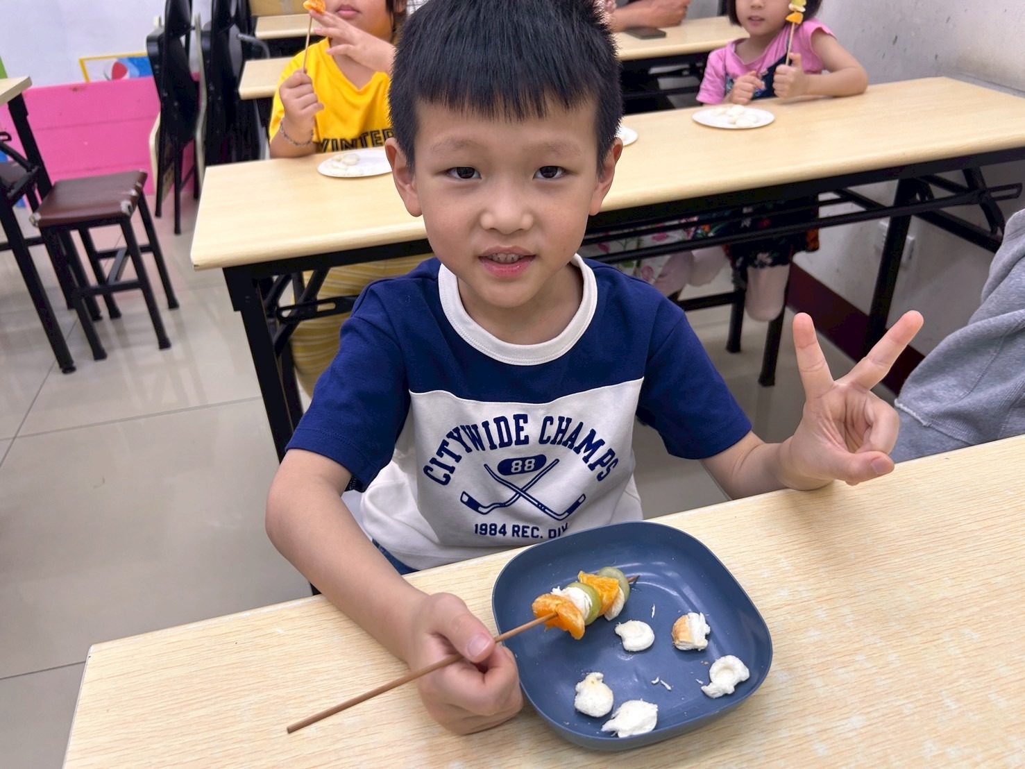 切好的水果(葡萄、橘子)讓孩子動手操作